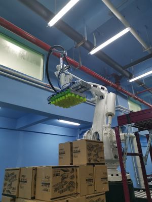 The Robot Palletizing System supports mainstream robot brands from China, Europe, and Japan, with a load capacity ranging from 60 kg to 500 kg. It performs versatile palletizing tasks including single-box, multi-box, full-layer, and woven bag palletizing, widely satisfying diverse demands in modern industrial production lines.
